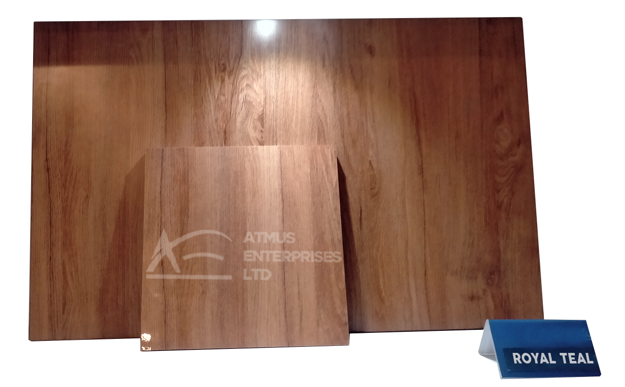 Royal Teal MDF Board features a warm, reddish woodgrain finish with soft linear patterns that add natural texture and depth. Its elegant tone blends modern sophistication with organic warmth, making it ideal for wardrobes, cabinetry, and decorative wall panels. Built on a durable MDF core, it offers both visual appeal and long-lasting performance for stylish interiors.